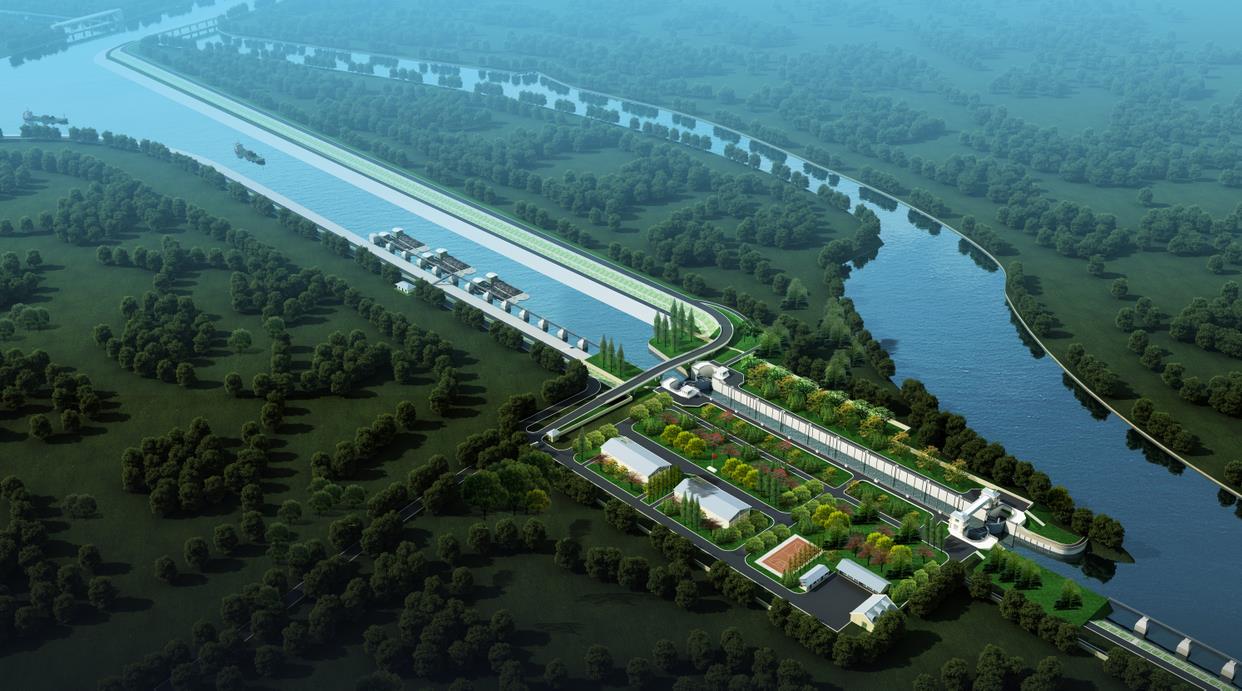 芒稻船閘擴(kuò)容改造工程效果圖...