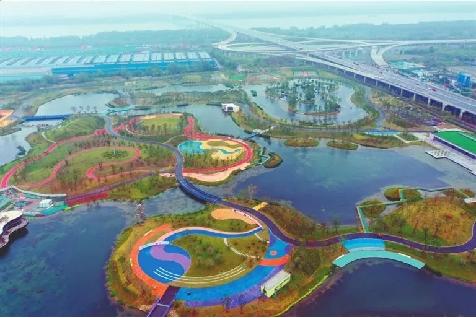 新化濕地公園項目結(jié)合城市規(guī)劃和片區(qū)水環(huán)境體系建設(shè),將貯渣場進(jìn)行綜合改造,因地制宜,循環(huán)利用,建成了一個集灰渣生態(tài)封存、污水廠尾水凈化利用、休閑健身、親子游園等為一體的多功能市民游樂公園。湖內(nèi)生態(tài)系統(tǒng)作為一個巨大的 “水質(zhì)凈化器”,能夠?qū)虮蔽鬯幚韽S處理后的達(dá)標(biāo)尾水進(jìn)行二次凈化處理,日凈水量近10萬噸。經(jīng)過凈化的水資源通過濕地系統(tǒng),輸送至多條河道,能夠幫助河道進(jìn)行補(bǔ)水、引流,從而改善區(qū)域河道水生態(tài)環(huán)境,逐步提高水體自我修復(fù)能力,實現(xiàn)片區(qū)水生態(tài)環(huán)境的良性循環(huán)。