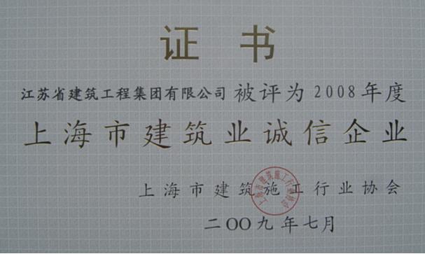 集團被授予“2008年度上海市建筑業(yè)誠信企業(yè)”稱號